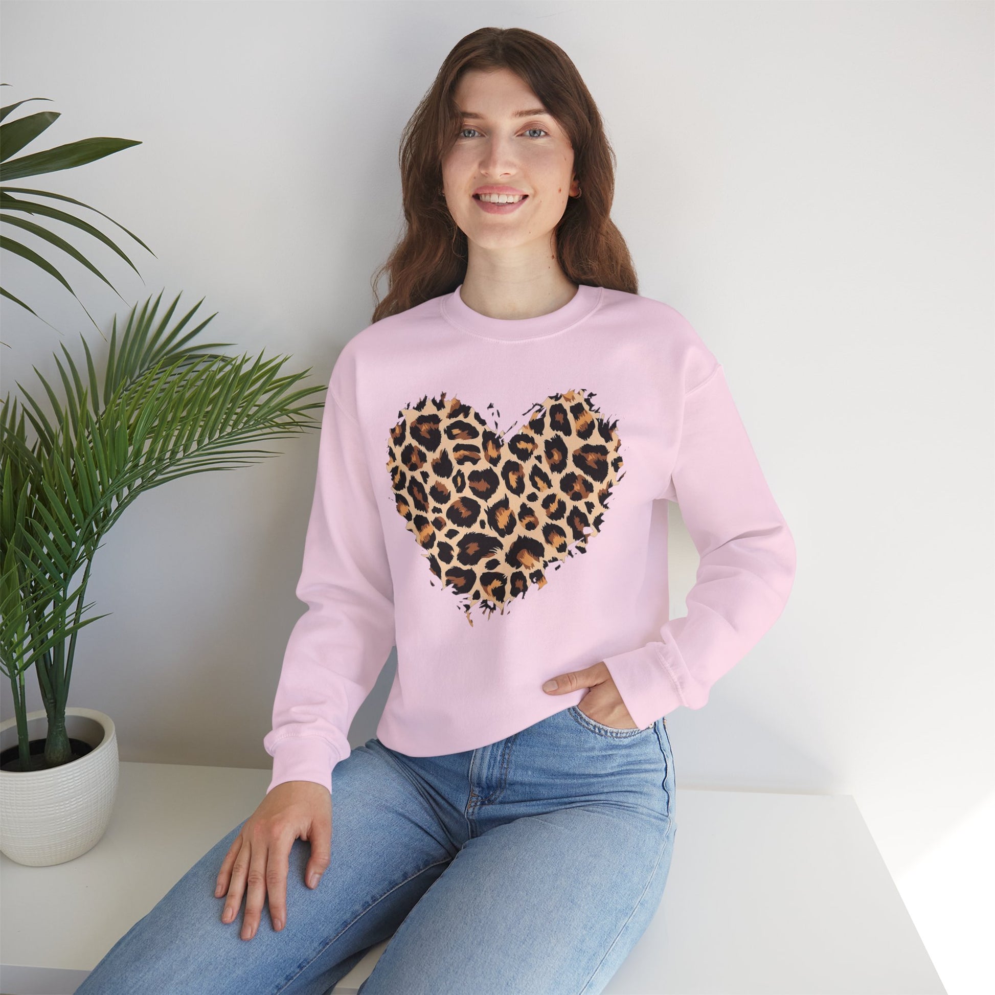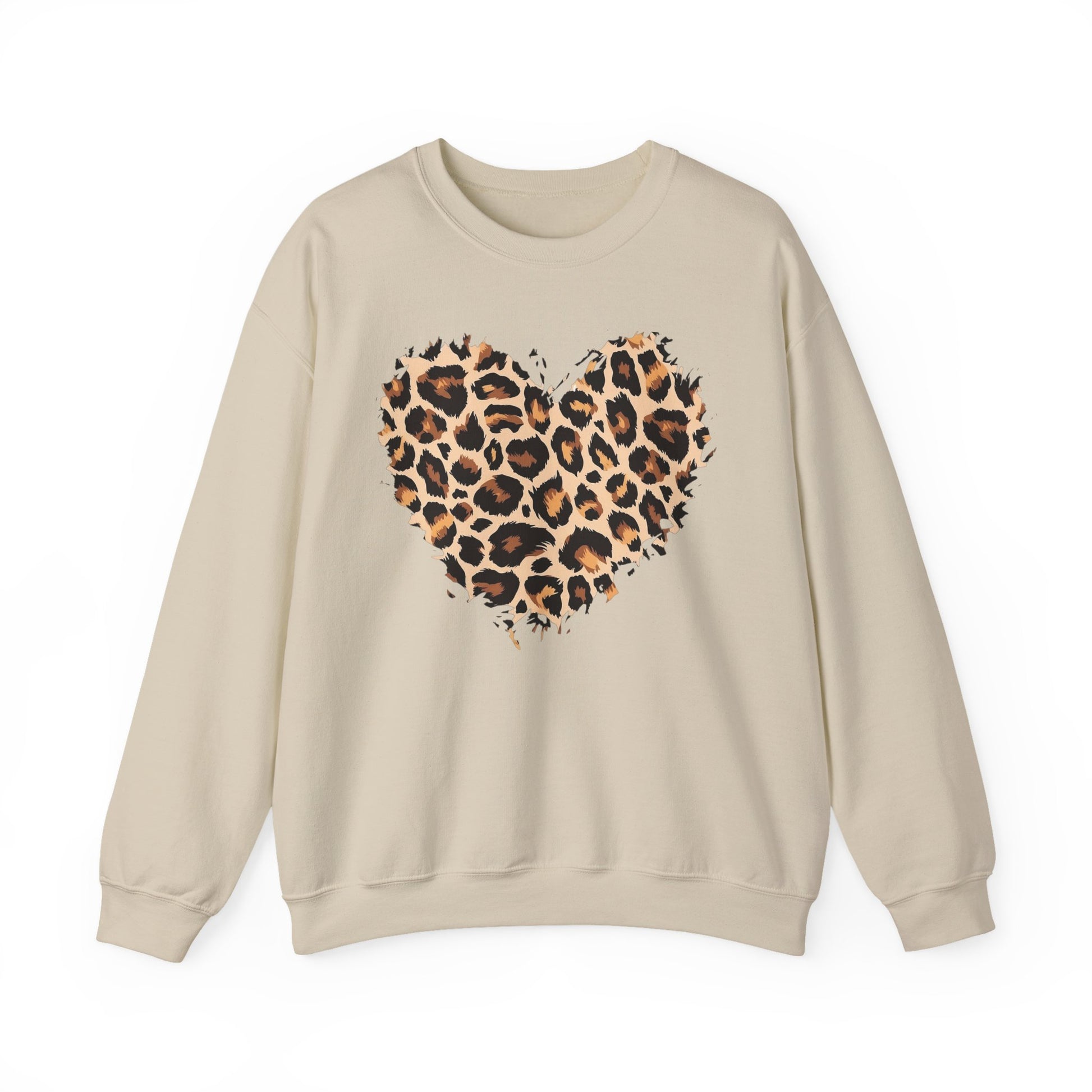 Leopard Heart Crewneck Sweatshirt - Animal Print Heart Pullover